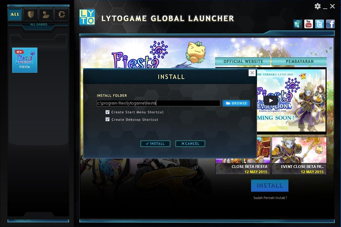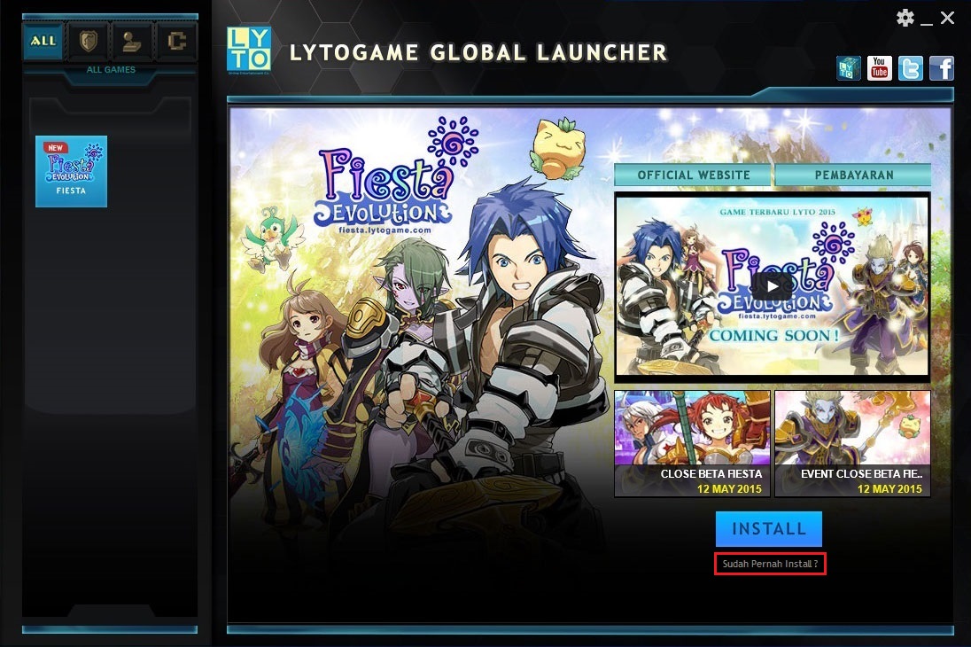 Penting : Game Fiesta Online Evolution Indonesia hanya dapat dijalankan melalui aplikasi Lytogame Global Launcher